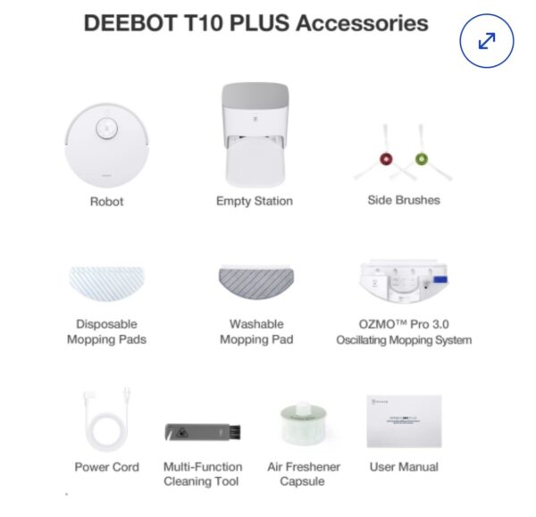 $678.00Original price was: $678.00.$349.99Current price is: $349.99. / 台🌈ECOVACS DEEBOT T10 Plus機器人吸塵和拖把組合,帶自動清空站,3000Pa,AIVI 3.0避障,OZMO Pro 3.0振動拖把,3D地圖,空氣清新劑