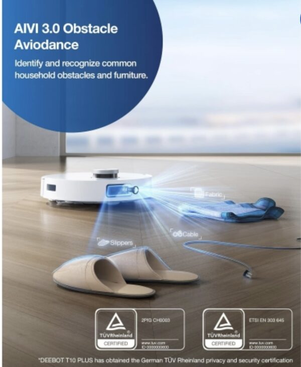 ECOVACS DEEBOT T10 Plus Robot Vacuum and Mop Combo with Auto-Empty Station, 3000Pa, AIVI 3.0 Obstacle Avoidance