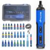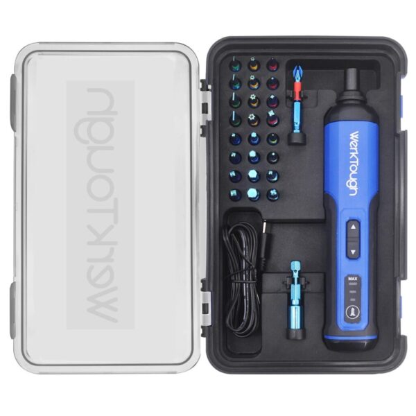 【PowerTough】 【充電款·電動螺絲刀】 🌟小巧機身,大扭矩輸出,21.5釐米(7.3英寸)單手🉑掌控,使用起來更靈活;3⃣段扭矩各種場景都適用,0-3Nm檔精細作業,眼鏡👓/玩具🧸/電子產品📱不傷螺紋、0-4Nm通用模式,櫃門🚪/開關面板/塑料件穩穩拿捏、0-5Nm強攻模式,木板組裝攻堅不卡頓🕺🏻,作業面再小也無壓力 🌟LED燈💡獨創環形💫光斑設計,黑暗角落/設備內部📺也能無死角照明🔆,再也不用盲猜作業🙈;24枚25mm常規刀頭➕1枚50mm加長刀頭,鉻釩合金S2鋼材硬度提升60%🆙,不生鏽不掉漆🙅🏻♀️,刀頭色環方便分區管理🤩 🌟Type-C充電口,🉑支持充電寶/車載🚗/筆記本💻/插座4⃣種快充,2000mAh電池🔋單次續航🉑擰600➕螺絲🔩;30秒閒置自動休眠😴,告別耗電焦慮;點按1⃣秒啟動,正反轉🔀一鍵切換;工具箱輕便小巧,便攜好收納✅