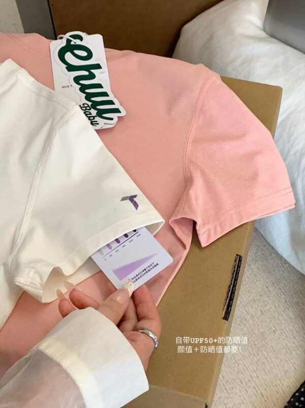 💫Chuu baby 涼感速乾T恤 🔥「會呼吸」防晒T恤!🔥 🥃 Chuu baby 涼感速乾 Tee強勢來襲,舒服到像第二層肌膚! ✨ 核心亮點✨ 1. 🌬️ 自帶空調感!SORONA+COOL涼感纖維,上身瞬間冰爽❄️,透氣速趕不悶汗,高溫天也能清爽自在! 2. ☀️ 真·硬核防晒!三防黑科技(防水+防污+防曬)!UPF防晒認證,陽光再猛也不怕!🌞 3. ✨ 會變色的黑科技袖口!Logo吸收紫外線自動變色🌤️➡️🌈,室內恢復原樣,趣味十足超吸睛! 4. 👚 心機正肩顯瘦王!正肩+微修身版型,藏肉顯瘦不緊繃!經典純色,高級感拉滿,搭配零難度! 5. 🛡️ 耐穿耐造實力派!抗皺!防污!防水! 質感順滑涼快,穿洗N次依舊有型!