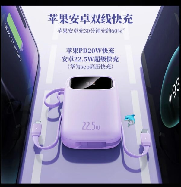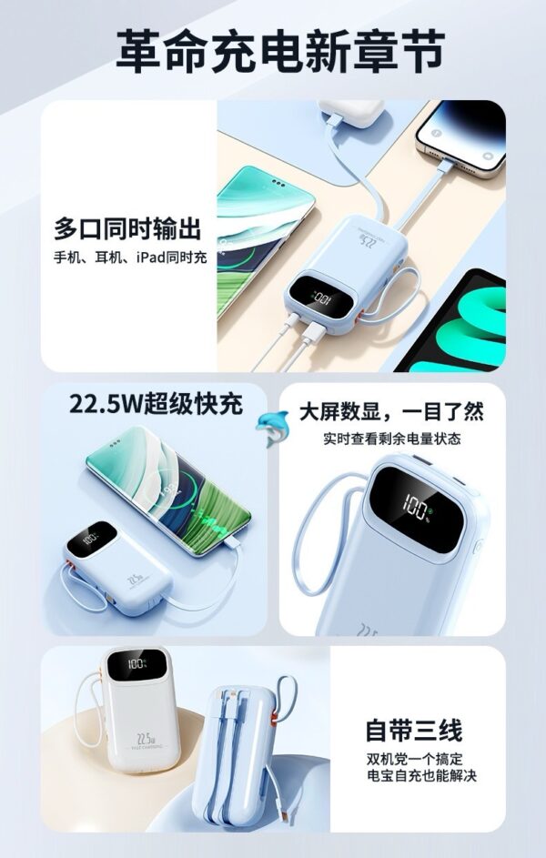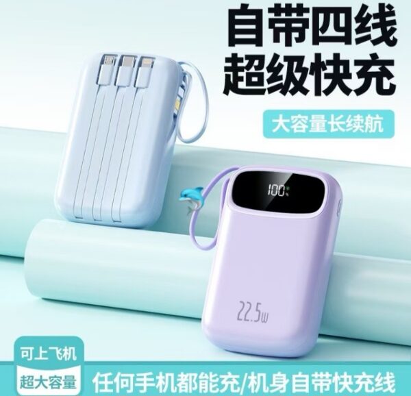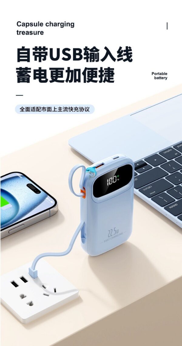 🎉本週爆款回貨‼️ 🌟自帶四線迷你快充🌟不管你是忙碌的上班族💼,手機電量隨時告急;還是愛出門拍照打卡的旅遊達人📸,需要隨時給設備充電;亦或是學生黨,在宿舍裡快速給手機回血📱,它都是你的絕佳選擇! 這是它的核心技能👏!擁有高效的快充技術,能在短時間內為你的手機補充大量電量。再也不用漫長等待,讓你迅速恢復“戰鬥力”💪。體積超小,重量超輕,就像一個小方塊,可以輕鬆放在口袋或包包裡。隨時隨地拿出來就能用,完全不佔空間,簡直是出行必備神器。 支持多種手機📱品牌和型號,無論是蘋果還是安卓,都能完美適配。還能給平板電腦、耳機等設備充電,實用性超強🥰。