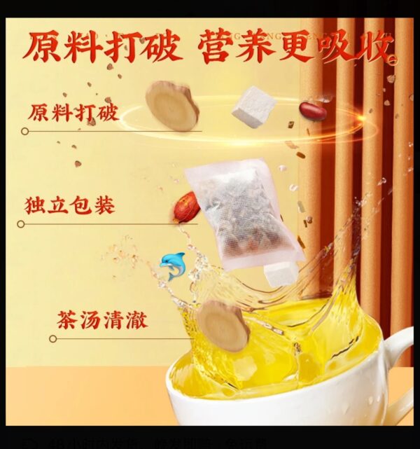 北京同仁堂出品,品質穩穩的✨ 。配料有橘皮、薏苡仁、大棗、荷葉等9種天然食材,8道嚴苛工藝製作,保留自然茶香,喝著特安心~茶包是食品級獨立小包,環保易降解,乾淨又衛生👏 。