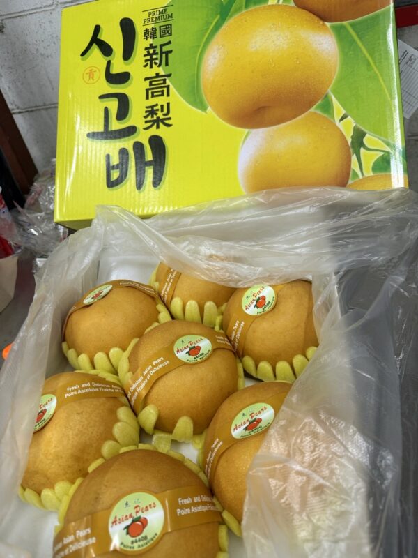 🎉新貨到:韓國新高梨,特別特別推薦🔥超甜、果大、多汁!水分飽滿,口感細膩,甘甜爽口超大果實,顆顆精挑細選皮薄肉厚,果大核小,儲存期長肉質細膩,清爽可口,香甜多汁每天吃一枚新高梨清潤肺部,改善呼吸系統和肺功能👍🏻 一箱7個裝!大size 一箱5kg