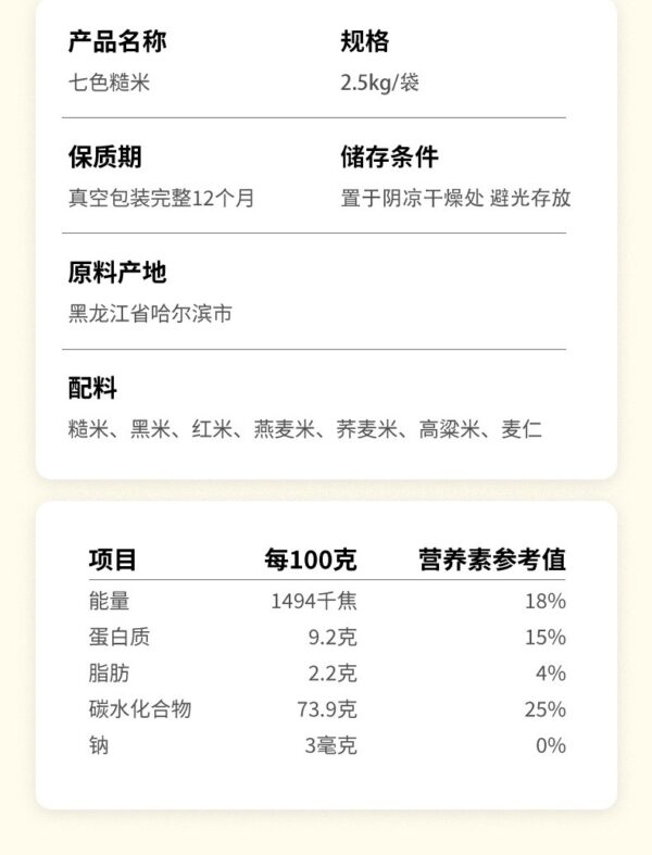 一包內含:糙米,黑米,紅米,燕麥米,蕎麥米,高粱米和麥仁。