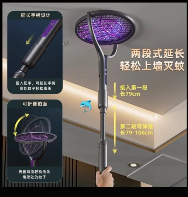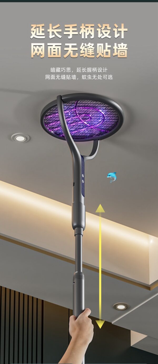 不管是客廳天花板的蚊子🦟 還是臥室角落、廚房縫隙,它都能輕鬆搞定!拉伸手柄+可旋轉網面,牆角、吊頂這些難夠到的地方,再也不是蚊子的“避風港”啦~晚上開著紫外誘蚊燈,放客廳還能當滅蚊燈用,睡覺都更踏實💤