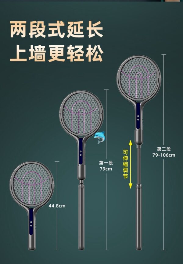 – 誘捕+電擊雙模式:紫外燈管仿生誘蚊,蚊子自動“送上門”,再配合2800V高壓電擊,瞬間消滅!手動拍蚊也超爽,大網面一揮一個準~ – 伸縮旋轉設計:手柄能拉長到92cm,網面360°旋轉,天花板蚊子也能輕鬆拍扁,再也不用搬椅子冒險啦✨ – 安全又貼心:5層安全網面只電蚊蟲不電人,雙重保險開關防止誤觸,家裡有寶寶也超安心👶 關電源還能自動消餘電,細節拉滿!