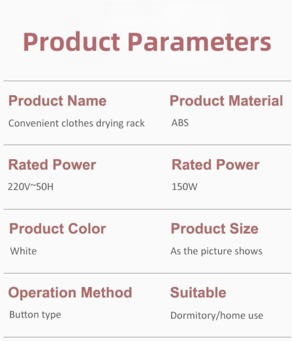 🌟衣架🉑拆卸,輕鬆1⃣塞就隨處可帶🚶,功能強大但輕便,僅420g⚖️;什麼衣物都適用,外套、襯衣還是內衣都能輕鬆懸掛烘乾;強大貼心💕功能,烘乾♨同時還🈶UV紫外殺菌功能,讓衣物不受潮氣干擾,滿足烘乾又殺菌小心思👀;安全🔰ABS材料製作,品質優,更耐用👍🏻