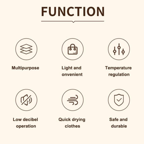 🌟配備多個出風口,乾衣更快🔜,最快30min⏱即🉐乾爽衣物,洗漱、化妝的功夫衣服就煥彩如新😻;採用30-60℃的溫度範圍🌡,溫和保護衣物😌,不用擔心🙅🏻♀️衣物因為長時間溫度過高而變形損壞或褪色;低分貝、🔇低噪音運行不擾人,夜間烘乾也能睡得香💤