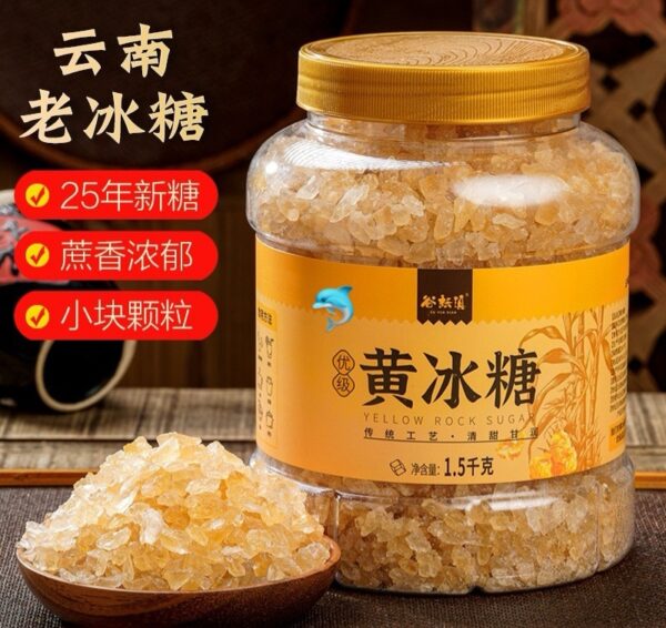 🎉食品上新‼️團購優惠價💰$29.99/1️⃣桶(3️⃣斤)‼️ 🌟古耘滇—黃冰糖🌟黃冰糖界的“寶藏”😍,你還沒擁有嗎?👏它簡直就是廚房和養生界的“寵兒”🥰,讓我忍不住要分享給大家!這款黃冰糖含有豐富的礦物質和微量元素,具有補中益氣、和胃潤肺的功效👍。而且它的甜度適中,不會過於甜膩,既能滿足你對甜味的渴望,又不會給身體帶來過多的負擔。 天氣乾燥時,泡上一杯冰糖雪梨水🍐,潤肺又止咳;來例假的時候,煮上一碗紅棗冰糖桂圓湯,暖宮又暖心🥰。做冰糖葫蘆🍡、紅豆沙、銀耳羹,加上它,味道瞬間提升好幾個檔次,甜度恰到好處,讓你一口就愛上💕!炒菜、燉湯的時候加幾顆,提鮮增色,讓菜餚更加美味可口🍲。 它採用天然甘蔗汁熬製而成,不添加任何防腐劑和色素,健康又美味🌱。規格是米粒大小,小小的顆粒,方便取用,無論是沖泡還是烹飪,都能快速溶解🧪。 黃冰糖呈現出晶瑩剔透的金黃色,看起來就非常有食慾😍。在燈光的照耀下,它就像一顆顆閃閃發光的寶石,讓人愛不釋手。