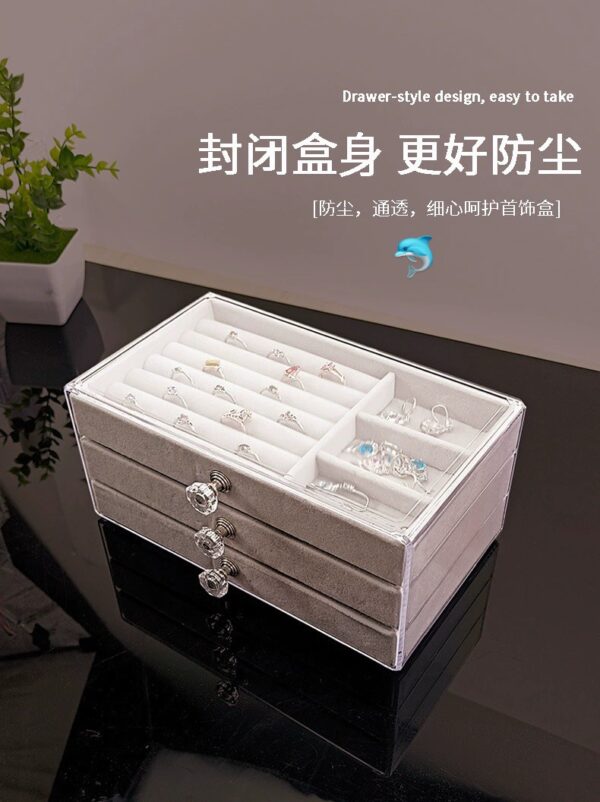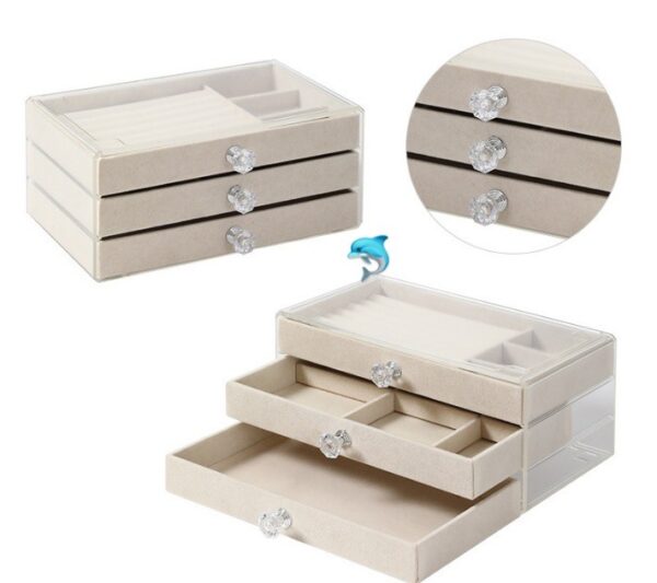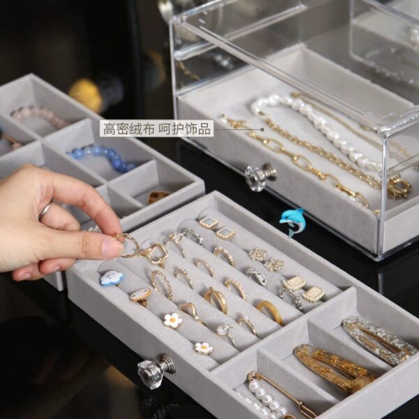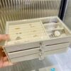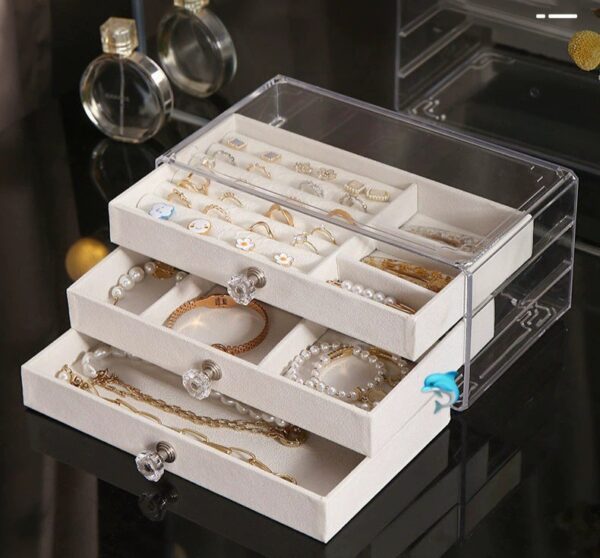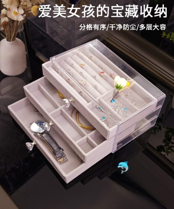 🌟三層首飾收納盒🌟透明多抽屜收納盒,放入絨盤是一體首飾收納,盒身通透但密閉,水💦與灰塵都無法進入,將金貴的首飾360度保護起來✋還能穩固疊放實用~