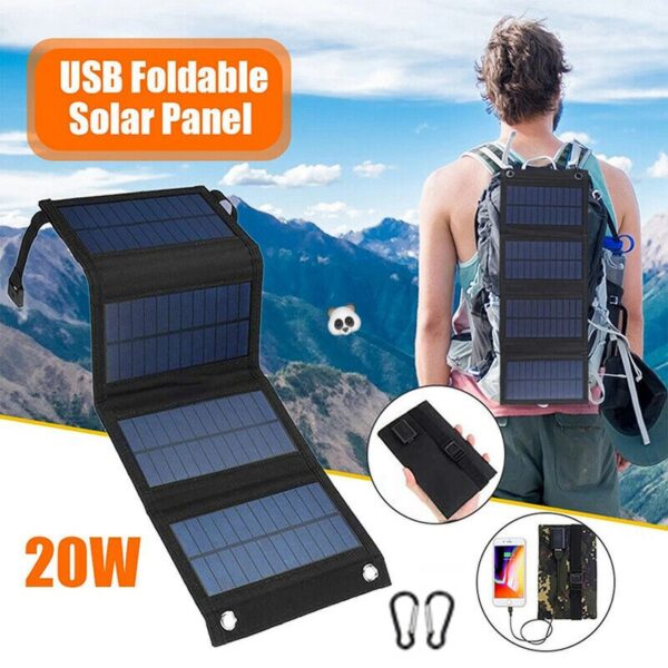 ⛺️野營愛好者們力推的神器👏!摺疊式太陽能充電板包,親測試❗陰雨天照樣可以充電💯,還防雨,放水👍可隨身攜帶的太陽能電源🔌!實現隨時隨地充電,不用再擔心😟電量不足,使用方便,只需把太陽板暴露在陽光下即可開始充電⚡️為手機📱電腦💻無線燈泡💡和移動電源🔋充電,分區摺疊,收納方便🉐配有登山扣🔗掛在揹包外,邊走邊充,實現電源自由🤘! ✅電壓穩定✅多種電器可用✅人性化設計✅便於攜帶✅防水,防晒 ▶️尺寸: 摺疊:10.5*16.5*1.5cm 展開:44*16.5cm ▶️重量:335g ▶️輸出: USB 5V ▶️最大功率:20W ▶️顏色:黑色,迷彩