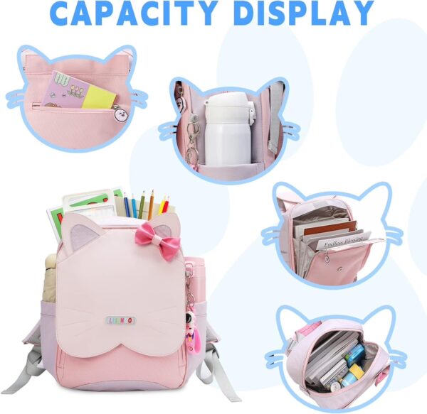 側袋可容納多達 25 盎司的水杯。裡面有一個主袋和六個書本分隔帶,方便分開課本,讓孩子養成良好的習慣。