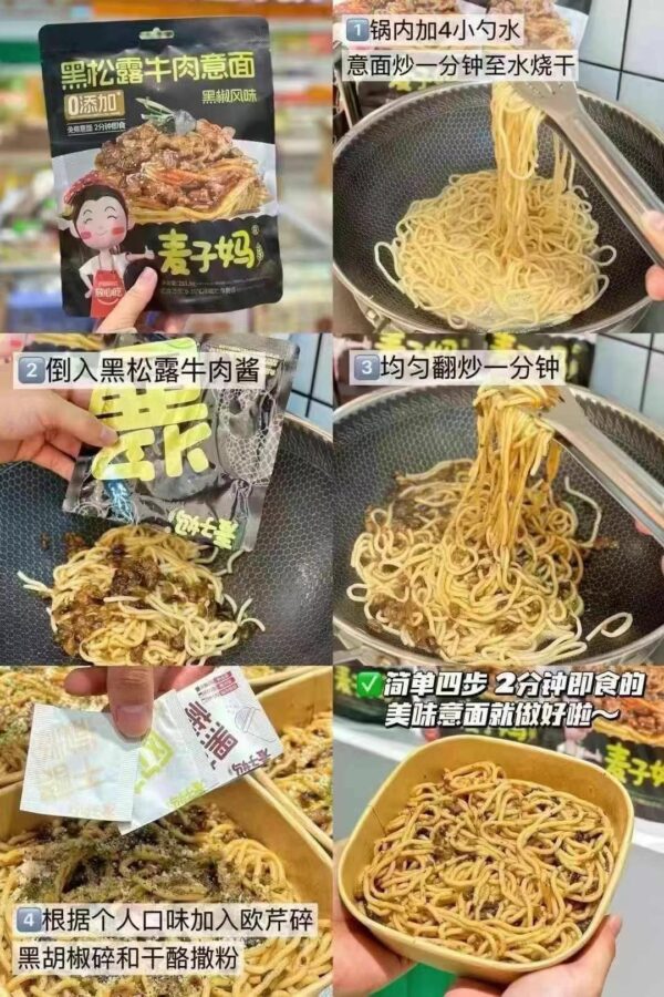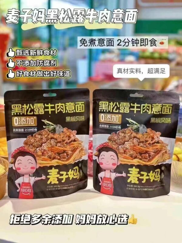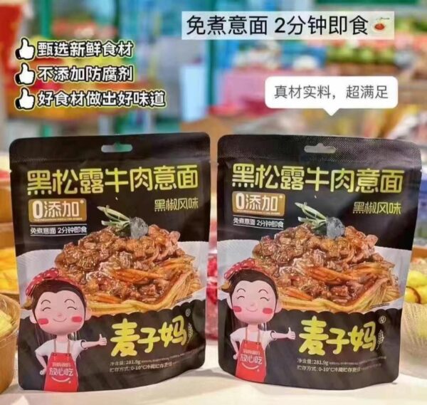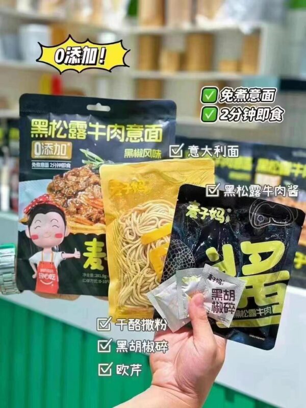 🎉現貨中!😘麥子媽 👩0添加免煮意麵新口味來啦🎉 🍜意麵依舊是進口杜蘭小麥 ✅免煮意麵 2分鐘即食 ✅0添加防腐劑 0添加人工色素 0反式脂肪酸 論如何快速吃上早餐/晚餐!2分鐘一盤意麵搞定✅一包肉醬 一袋意麵 超級方便!煮出來番茄味道濃郁,麵條勁道,肉醬又多,吸溜一口簡直了~~ 2分鐘就能做好一盤意麵 本寶媽真的愛了😍! 裡面足足5包料:✅黑松露牛肉醬1包✅免煮意麵1包✅乾酪撒粉1包✅歐芹1包✅黑胡椒碎1包 規格:281.9g/包