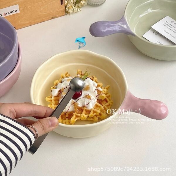 ✅陶瓷材質:健康無異味,給家人用超安心❤️ 高溫燒製不易裂,耐用又好清洗🧼 ✅容量剛好:500ml容量,裝湯、飯、菜都合適,一人食分量精準拿捏🍱 ✅異形手把:造型可愛還防滑,端拿穩穩當當,再也不怕碗打翻~手柄配色超絕,黃+粉、綠+紫…撞色太戳少女心💖