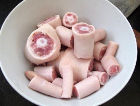 豬尾巴,即豬的尾巴,也稱皮打皮、節節香。由皮質和骨節組成,皮多膠質重,多用於燒、滷、醬、涼拌等烹調方法。豬尾有補腰力、益骨髓的功效。