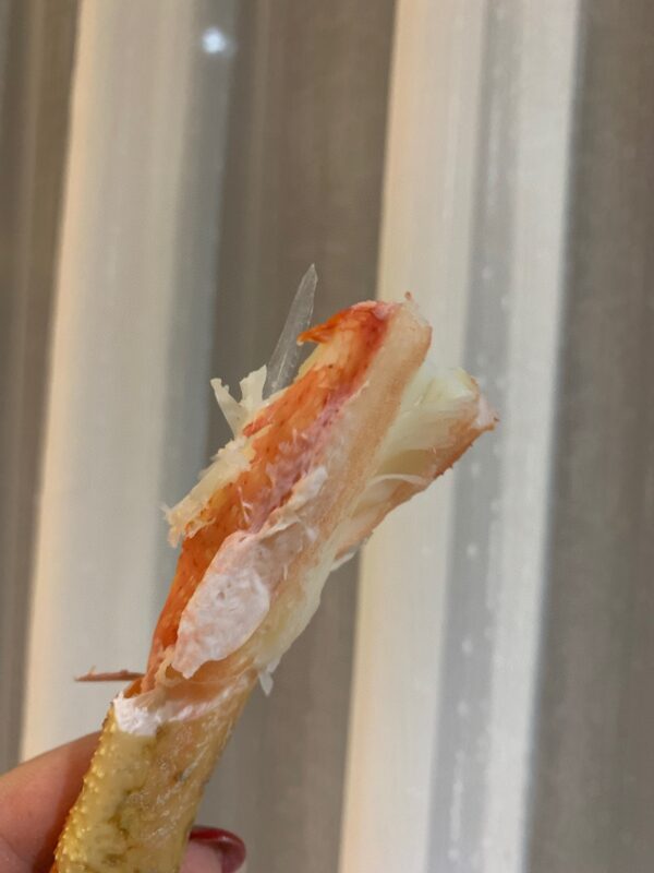 肉質飽滿,蟹肉絲絲分明,清甜可口。蟹腿的肉實實在在,飽滿十足。鉗子的肉更是一嘴吃到膩。這才是100%的蟹肉棒!太太太太好吃了!