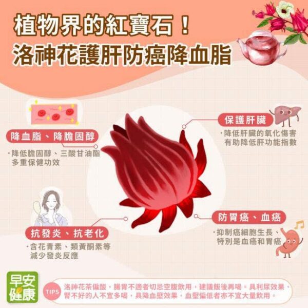 改善脂質代謝:研究話洛神花有助改善血脂水平,降低壞膽固醇,保護心血管健康!❤️ 想保持心臟健康,飲杯洛神花茶係明智之選!😎