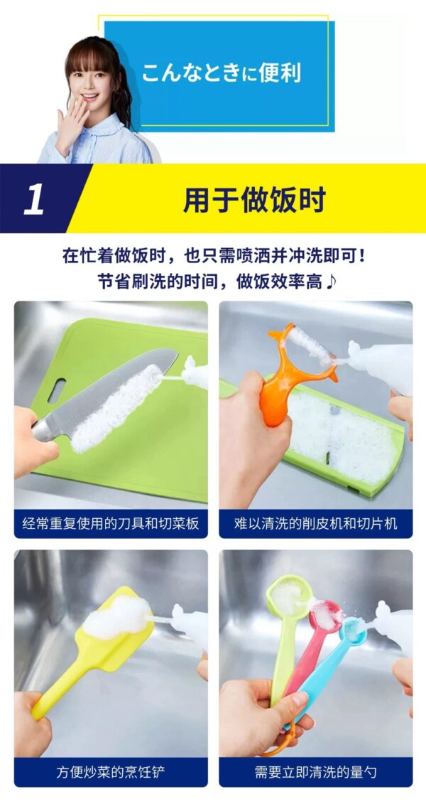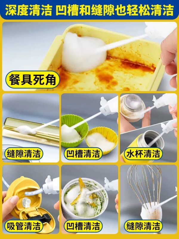 比其它洗潔精的優勢:泡沫能夠到達海綿擦難以清潔的深層區域,凹槽和縫隙,易於清潔, 如: 水杯, 吸管,杯蓋, 攪拌棒, 凹槽清潔, 刨絲片
