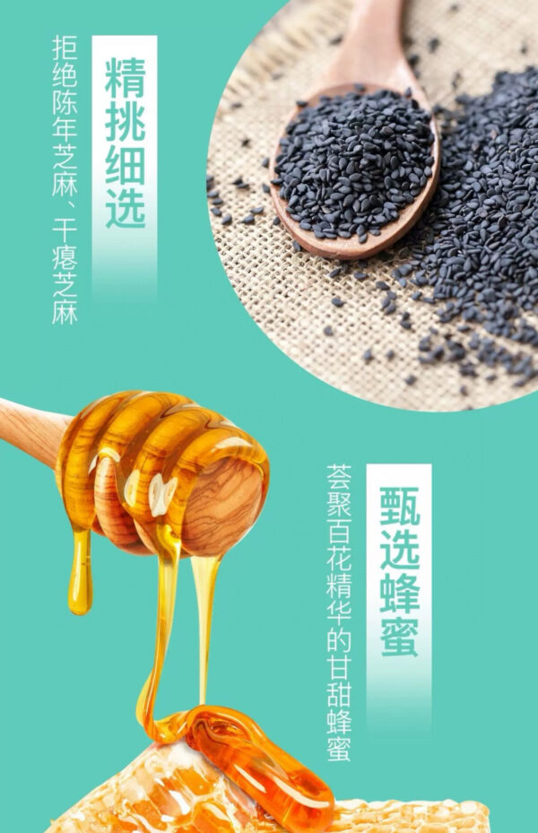 • ✅ **以黑養黑**:黑芝麻含豐富黑色素、維生素E,由內而外滋養髮絲、潤澤肌膚。