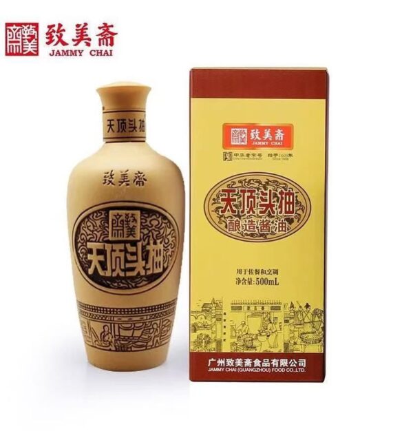 🍶亦已有四百年歷史。‘🌟天頂頭抽’製作特別,前後發酵晒製過程約需三百日。由於晒製時間長,晒製場地又在高處(所謂天頂),採用的又是頭一道油,故豉香濃鬱,味道鮮美,醬味濃稠氨基酸態氮含量高於國家規定的特級醬油標準。