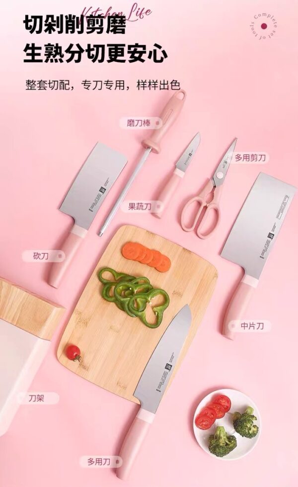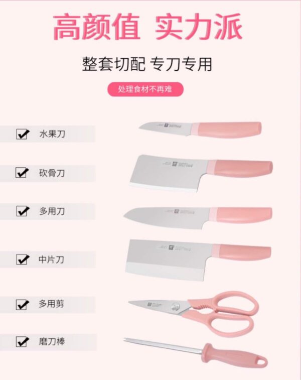 少女心爆棚💕雙立人粉色7件套菜刀套裝,廚房顏值擔當!