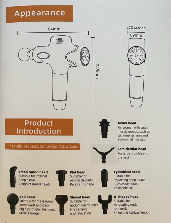 🌟配🈶8️⃣個按摩頭,適🈴不同部位的需求👍高效📈緩解背部/頸部/手臂/腿部的肌肉痠痛‼️ 觸摸屏7️⃣檔變速⚠️深入筋膜組織👍機身硅膠包裹,有效防止滑落,易於抓握👋