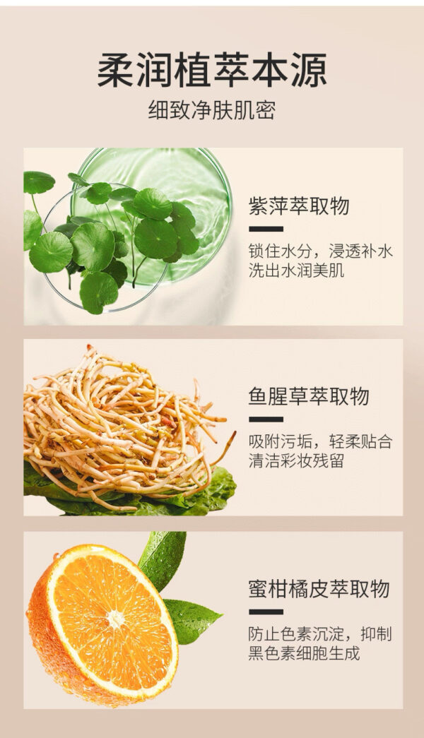 🌟 成分亮點: ✅ 紫萍提取物——深度保濕,洗後不乾燥 ✅ 魚腥草提取物——淨澈毛孔,彩妝殘留bye~ ✅ 蜜柑果皮提取物——提亮膚色,舒緩調理 ✅ Hydra Capture複合物——潔面=護膚二合一