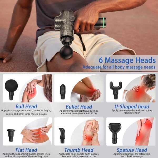 🌟配🈶6️⃣個按摩頭,適🈴不同部位的需求👍高效📈緩解背部/頸部/手臂/腿部的肌肉痠痛‼️ 觸摸屏7️⃣檔變速⚠️深入筋膜組織👍機身硅膠包裹,有效防止滑落,易於抓握👋