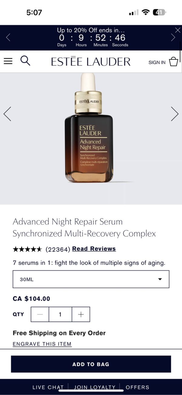 $236.00Original price was: $236.00.$87.99Current price is: $87.99. / 2支🎉專櫃正品:雅詩蘭黛小棕瓶精華,大禮包拆出,🈚️盒裝的每支30ml(最新日期到)