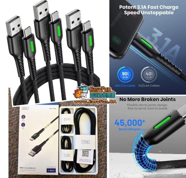 🔥INIU USB-A ⇋ Type-C 極速數據線·3條裝‼ 🔥🛒亞馬遜爆款2W+好評💯