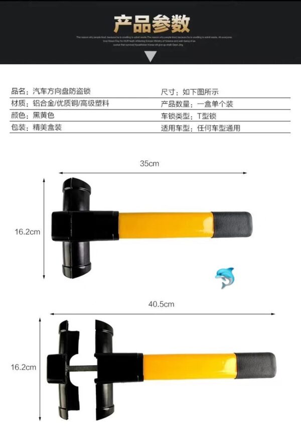 🎉爆款返貨‼最近偷車賊太猖狂了.一分鐘內你的愛車🚗可能就被盜了.【汽車T型方向盤鎖】上線啦. 🚫🔐加強防盜、解決一切煩惱 🚫🔐加厚防盜鎖、高檔鎖芯、防據防撬 ⭕️🔒優質防磨海綿墊.保護方向盤不被刮傷 ⭕️🔒加粗加厚精鋼鎖樑.曲線設計舒適把柄.配帶鑰匙🔑輕鬆鎖定 ⭕️🉑️還可防盜、防身、自救 材質:鋼 尺寸:19*36cm