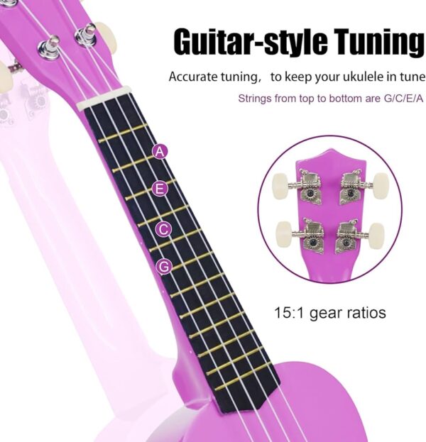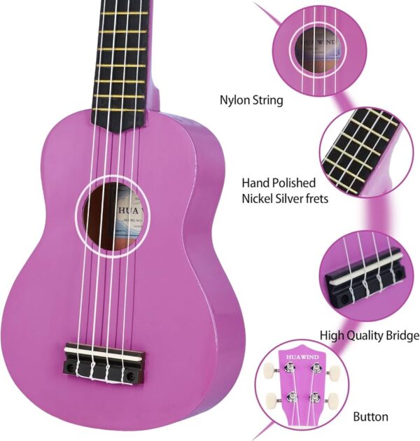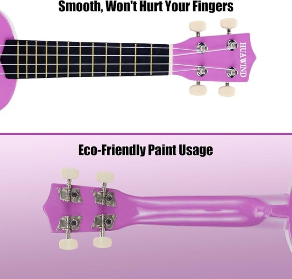【華風HUAWING🌬】品牌 【21寸高音尤克里裡】 🌟精準調音不走調,讓耳朵👂🏻只聽到最純粹的音符♪,專業🧑🏻🎓配備密封15:1齒輪⚙調音機,🆚優於普通14:1齒輪,微調更細膩😌,音準更穩定🎼;琴身採用全椴木🪵製作,頂部、背板和側面均選用同1⃣材質,保證音色的均勻與共鳴🕺🏻;琴橋同樣採用實木設計✅,調音栓為金屬材質,經久耐用,細節也靠譜👍🏻 🌟小巧便攜,21英寸經典最小尺寸,長度約53釐米,厚度約7.6釐米,重量⚖輕盈,握持感舒適;琴頸粗細適中,小朋友也能牢牢握住,指板上的品位標記📌清晰,配合尼龍弦的低張力🪢,彈琴時手指✋🏻不易痠疼🙅🏻♀️;指板上的12個品位經過手工拋光💫,邊緣圓潤不傷手✋🏻,琴身的拼接及底漆都採用環保材料♻️,用做小寶寶👶🏻音樂🎵啟蒙也安全👏🏻【顏色:僅粉色】