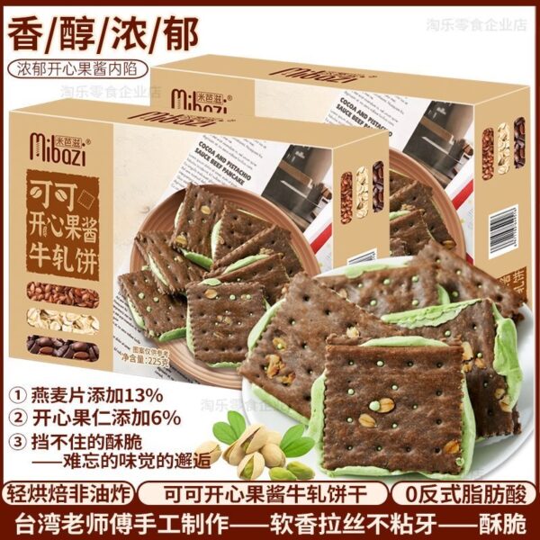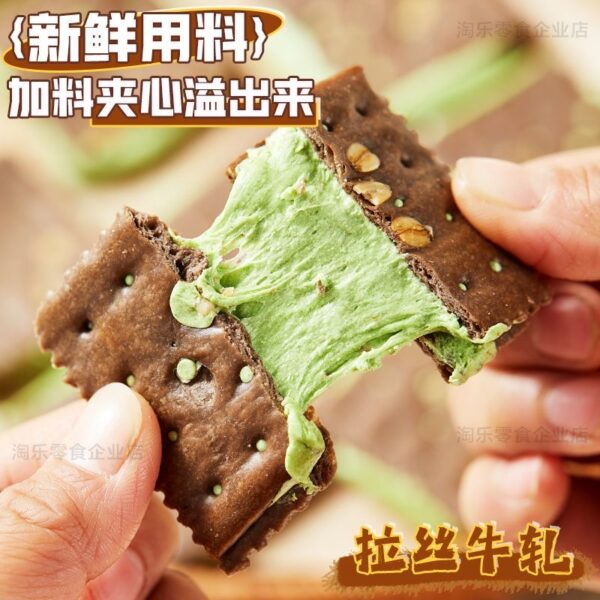 一打開盒子就聞到濃鬱的香蔥和奶香,或者開心果醬香,手工製作的餅乾酥脆到掉渣,中間的牛軋夾心居然能拉絲! 😭 它絕對不是普通餅乾!酥脆的餅乾層夾著滿滿的牛軋餡,一口咬下去直接拉絲,蔥香和奶香在嘴裡爆炸!手工製作的質感超級紮實!