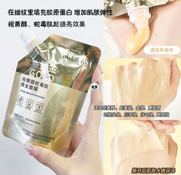 🚦清貨特價🔥💰$9.99/3️⃣袋🚦 🐼💞駐顏活膚高能助手 – 視黃醇蛇毒肽黃金面膜💞 面膜的軟黃金💯包含三大珍貴成分,金箔, 甘油, 蛇毒肽,一次護理🉑為肌膚帶來充分養護👍蛇毒肽🉑有效改善肌膚粗糙🧽天然🌿甘油成分🉑有效保濕💦輕奢細微金箔🉑幫助肌膚抗氧化,提拉緊緻,提亮膚色🤩 ▶️成分:金箔, 甘油, 蛇毒肽,視金醇 ▶️容量:100ml ▶️功效:改善肌膚粗糙,緩解肌膚乾燥,提亮膚色 ▶️保質期:2027年