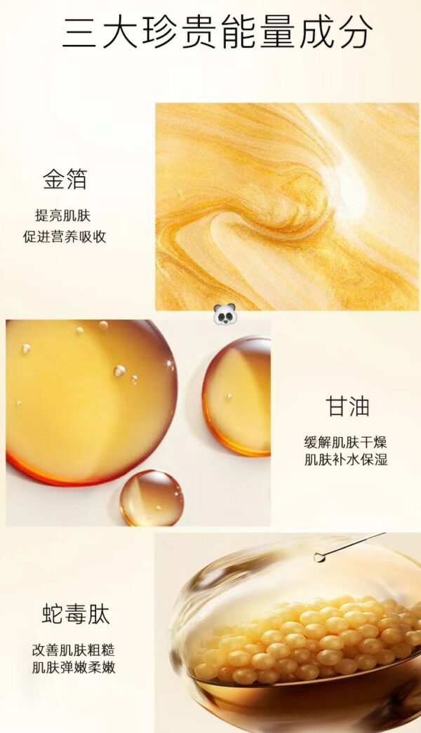 ▶️成分:金箔, 甘油, 蛇毒肽,視金醇