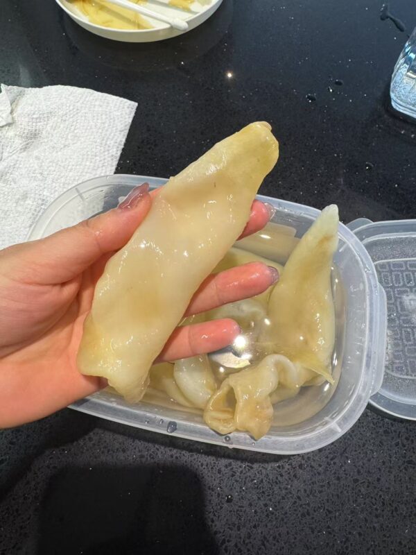 🥳黑五特價‼ 🌟 非常厚肉,可以放心囤👏👏 優質深海野生黃花筒膠,大頭約55頭左右 🎖️🎖️黃花膠為黃花鱸魚鰾,通常是筒狀,也稱“黃花筒”,是產量大的花膠品種之一。其營養價值很高,膠質好:燉後膠肉軟滑,肉質較厚,口感不錯。黃花膠補氣血、滋陰養肝補腎功效顯著,也是護膚美容養顏的好選擇。 ✨✨花膠與燕窩、魚翅齊名,是“八珍”之一。花膠素有“海洋人蔘”之譽。它的主要成分為高級膠原蛋白、多種維生素及鈣、鋅、鐵、硒等多種微量元素。