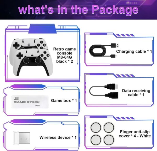 📦 盒裝全套配齊: ✅ 遊戲主機 × 2 ✅ 充電線 × 1 ✅ 數據接收器 × 1 ✅ 無線設備 × 1