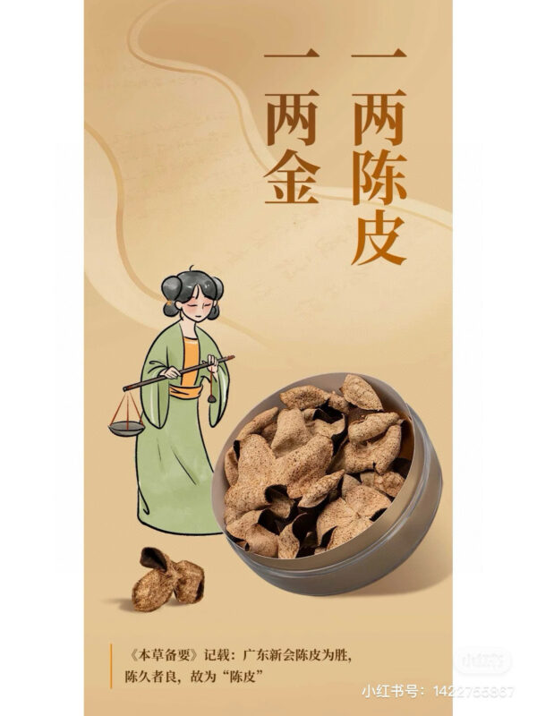 🎉正宗5️⃣年新會陳皮 新會陳皮作為國家地理標誌性產品,是廣東“三寶”之首《本草綱目》中記載陳皮性溫、能入茶、入膳、入酒、入藥。藥食茶同源的陳皮是用地道正宗的新會茶枝柑果皮製成,柑果經過開皮晒乾,陳化三年以上,才能稱之為新會陳皮,也稱為“廣陳皮”。 食補正當時!每天堅持喝杯陳皮水,對咳嗽、有痰、咽炎、喉乾及咽喉胂痛等不適有明顯效果。