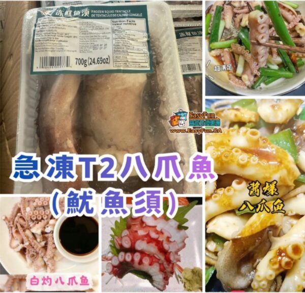 急凍T2八爪魚(魷魚須)之前專供日本高檔餐廳,非常好吃😋大隻卻不老,有嚼勁!解凍白灼後就是八爪魚刺身,亦可滷味,爆炒,巨巨好吃😋 700g/包裝 一盒