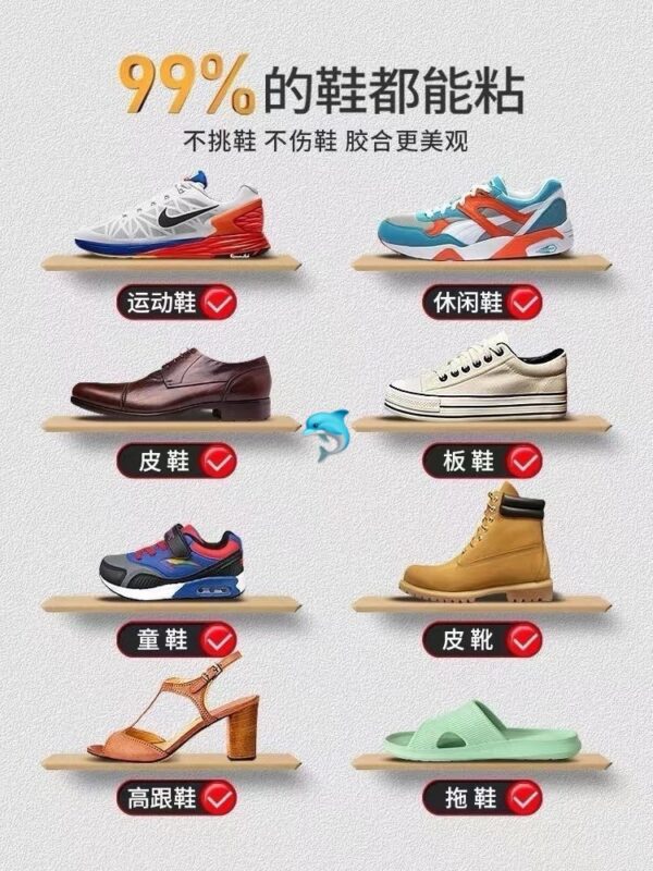 – 鞋類修補:運動鞋、皮鞋、拖鞋開膠?它能讓鞋子“重獲新生”,99%的鞋都能粘哦~