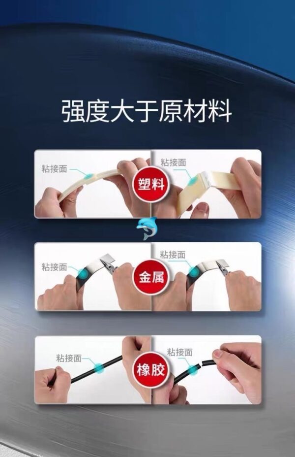 – 粘接力💪:強度大於原材料,粘好後暴力測試都不怕,甚至能吊起大桶水,結實到離譜~