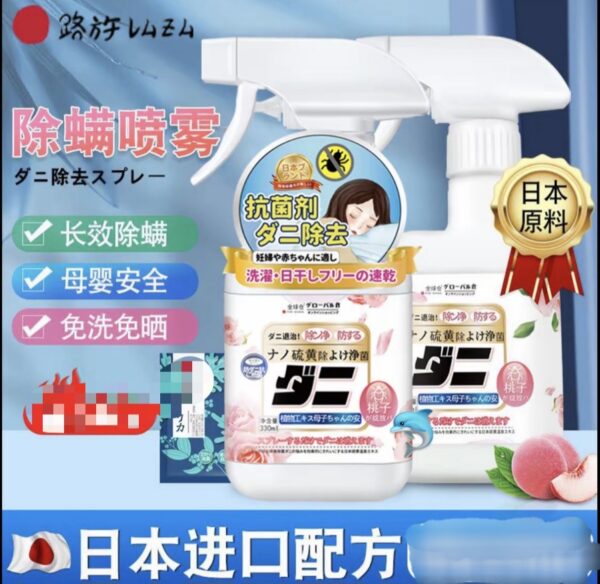 🌟出口日本🇯🇵除螨噴霧🌟 這款全球倉除螨噴霧真的是救星✨!用的時候一噴超方便~它的功能超強大,除螨殺菌率高達99.99%,能深層清除床上、衣物、沙發甚至毛絨🧸玩具裡的蟎蟲和細菌,讓你和家人遠離塵蟎困擾👍! 它是植物萃取的溫和配方,對皮膚無刺激,孕婦、嬰兒、老人都能放心用🥰!而且不受天氣限制,陰雨天也能輕鬆除蟎,免洗免晒,噴一噴就搞定,操作簡單到不行~ 不管是臥室的床品、衣櫃裡的衣物,還是寵物寢室、酒店用品,哪裡有蟎蟲噴哪裡,多場景適用,把家裡的每個角落都變得乾乾淨淨💯!噴完還帶著淡淡的桃子🍑香,溫馨舒適不刺鼻,整個家都變得清新又好聞~