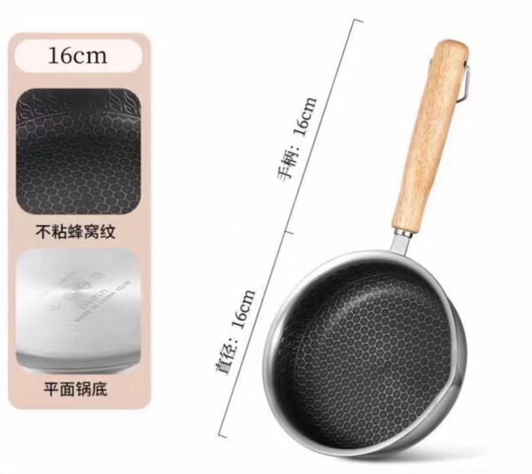 不沾鍋塗層太給力!蛋餅不沾鍋底,翻面超絲滑,出鍋完整不破皮🫕 食品級不銹鋼鍋身,安全無異味,接觸食物更放心;實木手柄隔熱防燙,握感舒適不打滑;鍋底加厚設計,導熱均勻,小火就能快速煎熟,節能又省時;16cm尺寸,剛好不1-2個木精,也都很不充足;日常還能煎香腸、煎荷包蛋、做蛋餃,實用性拉滿!