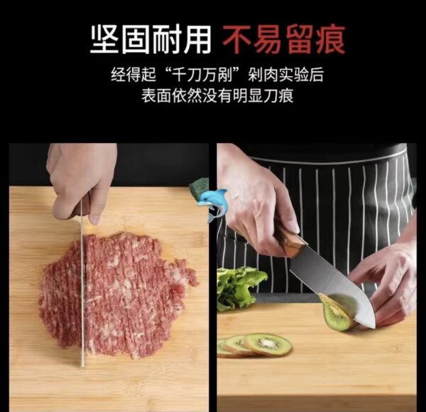 採用天然竹材拼接打造🌿 竹紋清晰自然,質地堅硬緊實,耐砍耐切不易掉渣,剁肉、切骨頭都能hold住,長期使用不易變形。天然竹材自帶抑菌屬性,比木質菜板更不易發黴,清潔後快速晾乾即可,衛生又省心;無漆無蠟無異味,直接接觸食材超放心,老人小孩都能安心用👏!