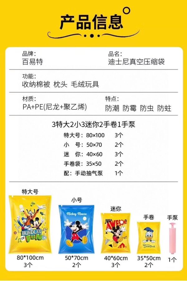$30.00Original price was: $30.00.$12.99Current price is: $12.99. / 套(11件套)🎉抄底價‼ 迪士尼真空壓縮收納袋(11件套)‼