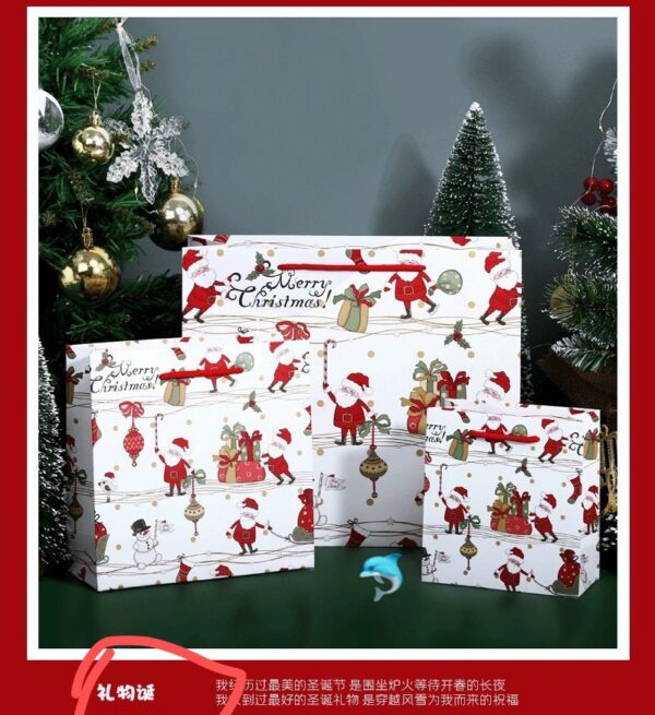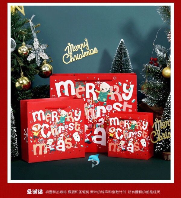 聖誕節送禮,包裝包到手抽筋🤣🤣 這款禮品袋完美解決了這個問題!濃濃的節日氣氛! ❶堅固耐用,多股編織手提繩,從客戶體驗 角度不勒手設計 ❷結實耐用而又不失美觀,精緻 貼心,採用雙層包邊設計 精緻可愛 ❸貼心的防劃手設計,美觀且承重力更強 讓您更放心 ❹採用科學工藝技術製作底部立體剪裁 進口膠水黏貼,大方得體 堅固耐用