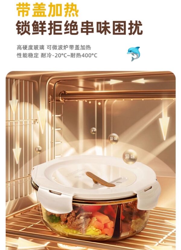 材質:高硼硅玻璃 規格:圓3格950ml+650+480ml 顏色:奶白蓋 款式:配套保溫袋