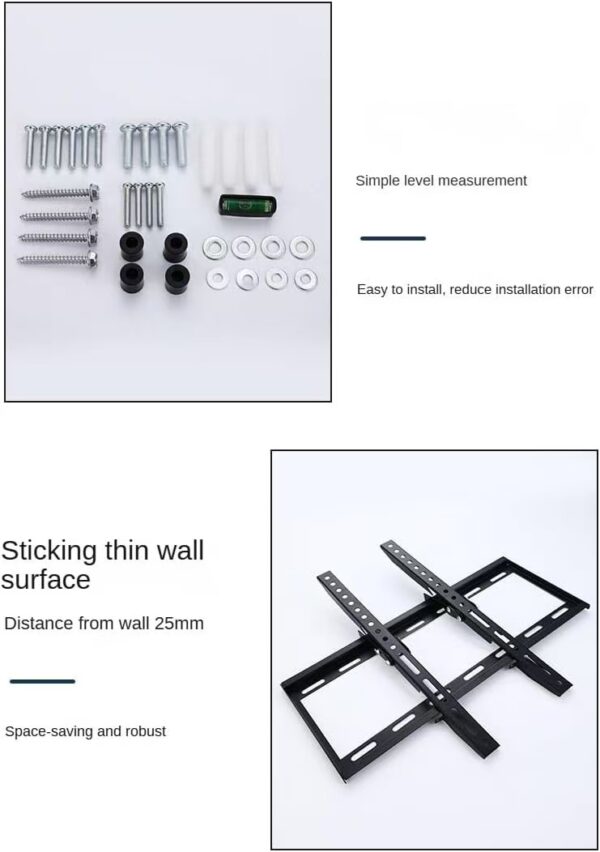 🎉新品現貨,🔥電視壁掛架🔥 ✅超強兼容🔍:適配26″-63″全品類電視,LED/LCD/OLED/曲面/QLED等全hold住,100×100-400×400mm VESA尺寸全覆蓋,多數機型通用不挑款✨ ✅承重抗打⛓️:優質冷軋鋼打造,承重高達55kg穩固不彎折,黑粉防鏽塗層加持,耐用性拉滿超安心🛡️ ✅超薄省空間🌟:離牆僅25mm低輪廓設計,利落不佔地,家裝辦公都顯簡約高級感💫 ✅安裝零難度🔧:全套配件配齊,自帶螺絲、工具+氣泡水平儀,附詳細圖解,新手也能快速搞定👌 剛需速衝,手慢無🚀