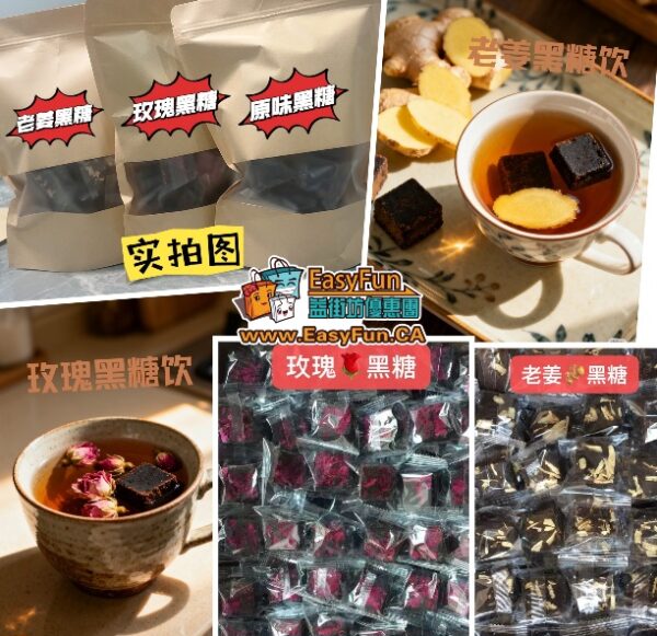 三款口味: 1️⃣老薑黑糖 2️⃣玫瑰黑糖3️⃣原味黑糖