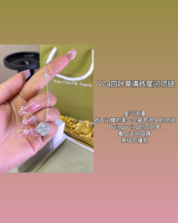 🎉新品預訂,下單後約3-6週到貨‼ 🍀VCA四葉草滿鑽星河項鍊🍀 星河浪漫,鋯石閃耀的美~會被誇很久的項鍊 Blingbling的四葉草,戴上去好吸睛 高級不撞款 我願稱它為溫柔的神,布靈布靈的它真的太美了 完全抗拒不了bulingbuling瞬間拿捏!!! 特別仙又特別有氣質 滿鑽設計就是一個絕字👍🏻 自帶氣場buff!當之無愧一條項鍊搭配四季 實物真的更好看巨閃!!!! 全套包裝,送禮倍有面子